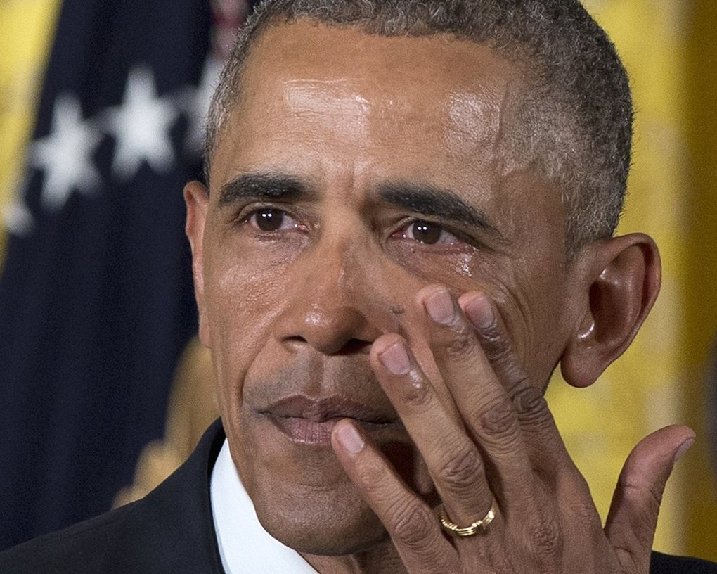 Photograph of President Obama wiping away tears as he speaks about steps his administration is taking to reduce gun violence, January 5, 2016, by Carolyn Kaster (The Associated Press). http://www.seattletimes.com/seattle-news/obamas-tears-invite-passion-for-action-against-gun-violence/
