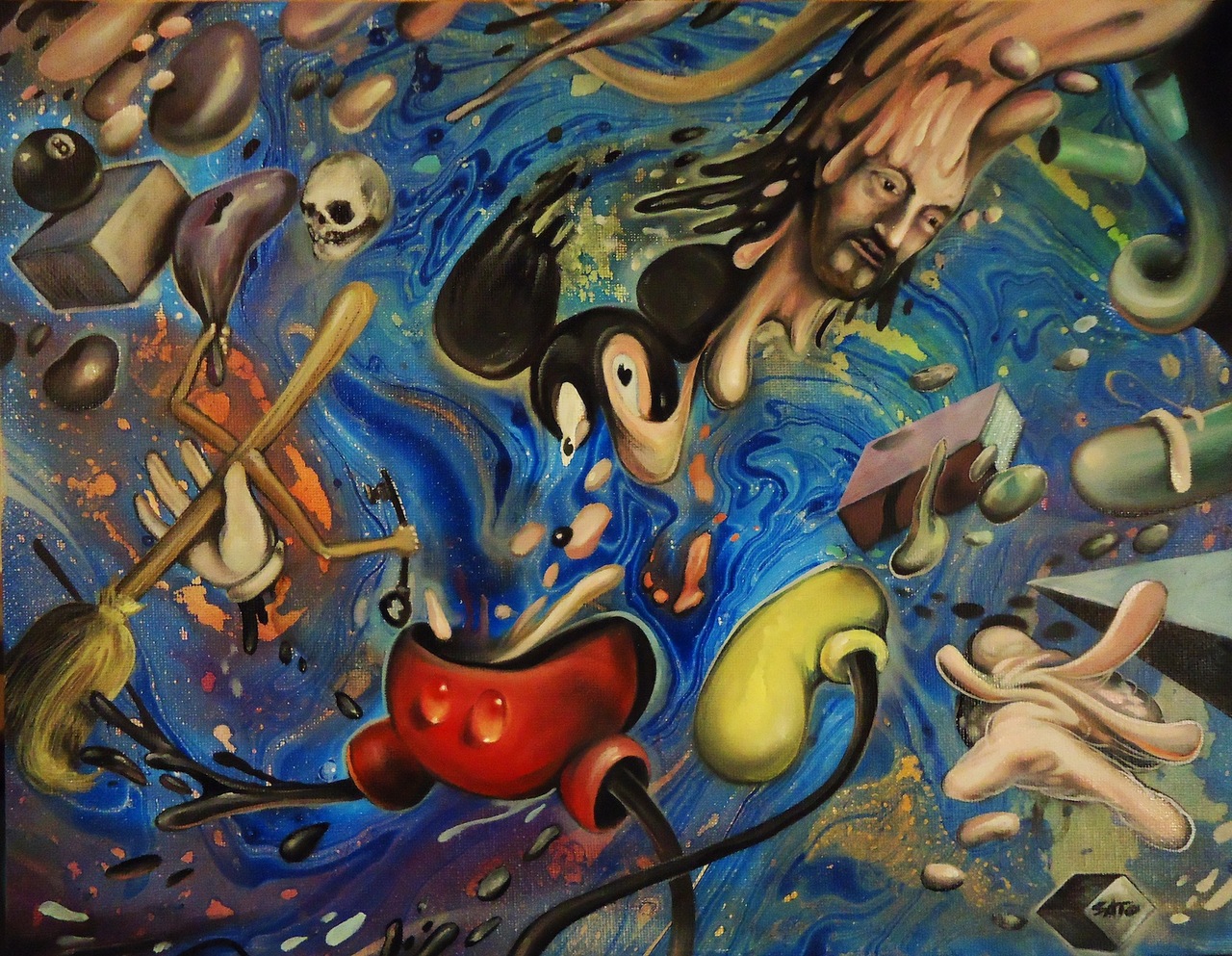 Painting by Andrew Sato. http://jesusjuiceflashback.tumblr.com/post/30631372289